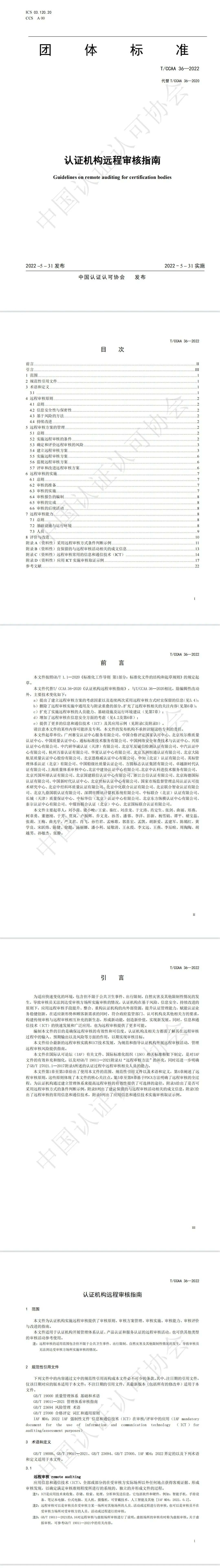 《認證機構遠程審核指南》如下: